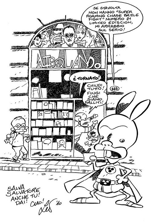 PS2: abbiamo isolato questa foto per omaggiare il ricordo del grande Salvatore Rizzuto Adelfio, recentemente scomparso e titolare della Fumetteria Altroquando di Palermo.